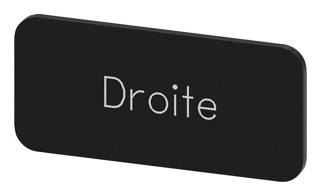 SIEMENS - 3SU1900-0AC16-0GG0 - Labelling Plate, " Droite ", Black Label, White Font, Snap on/Stick, 27 mm W x 12.5 mm H