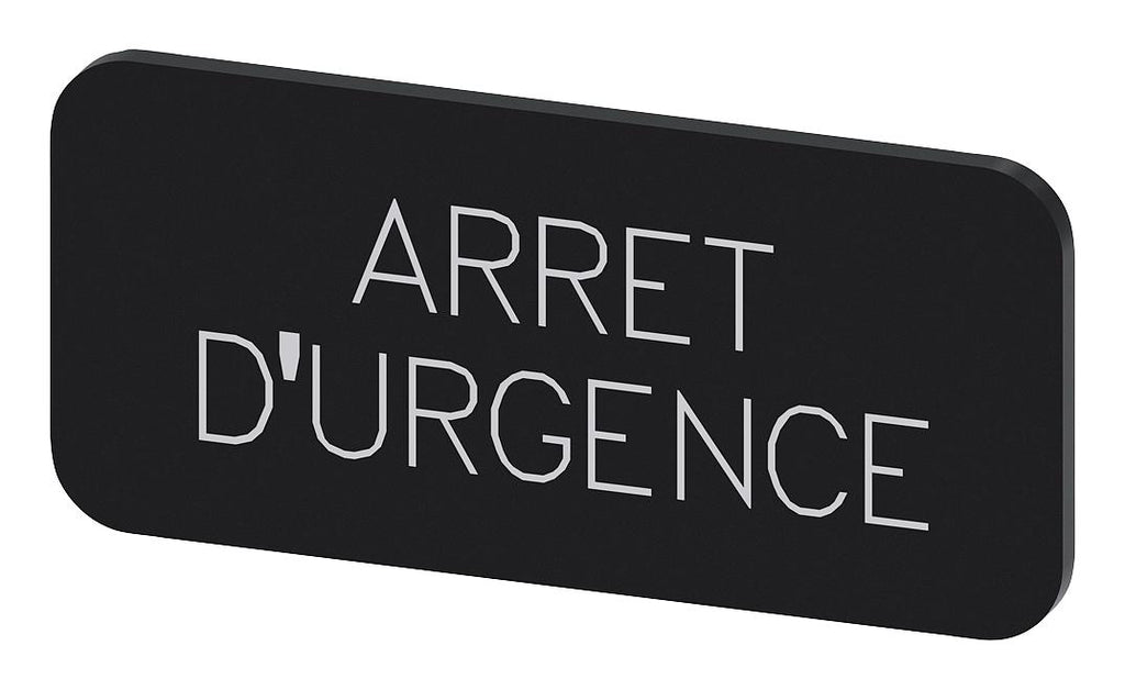 SIEMENS - 3SU1900-0AC16-0GQ0 - Labelling Plate, " Arret d Urgence ", Black Label, White Font, Snap on/Stick, 27 mm W x 12.5 mm H