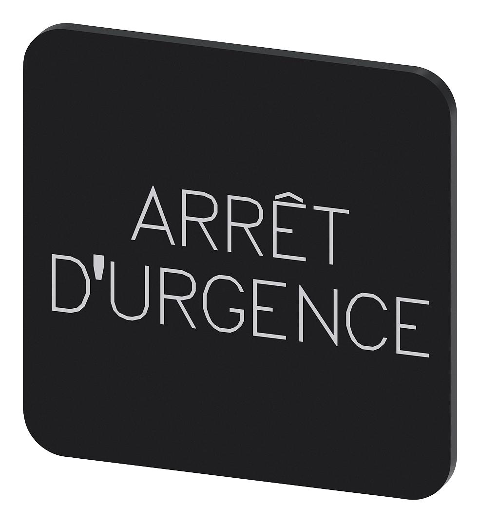 SIEMENS - 3SU1900-0AF16-0GQ0 - Labelling Plate, " Arret d Urgence ", Black Label, White Font, Stick, 22 mm W x 22 mm H
