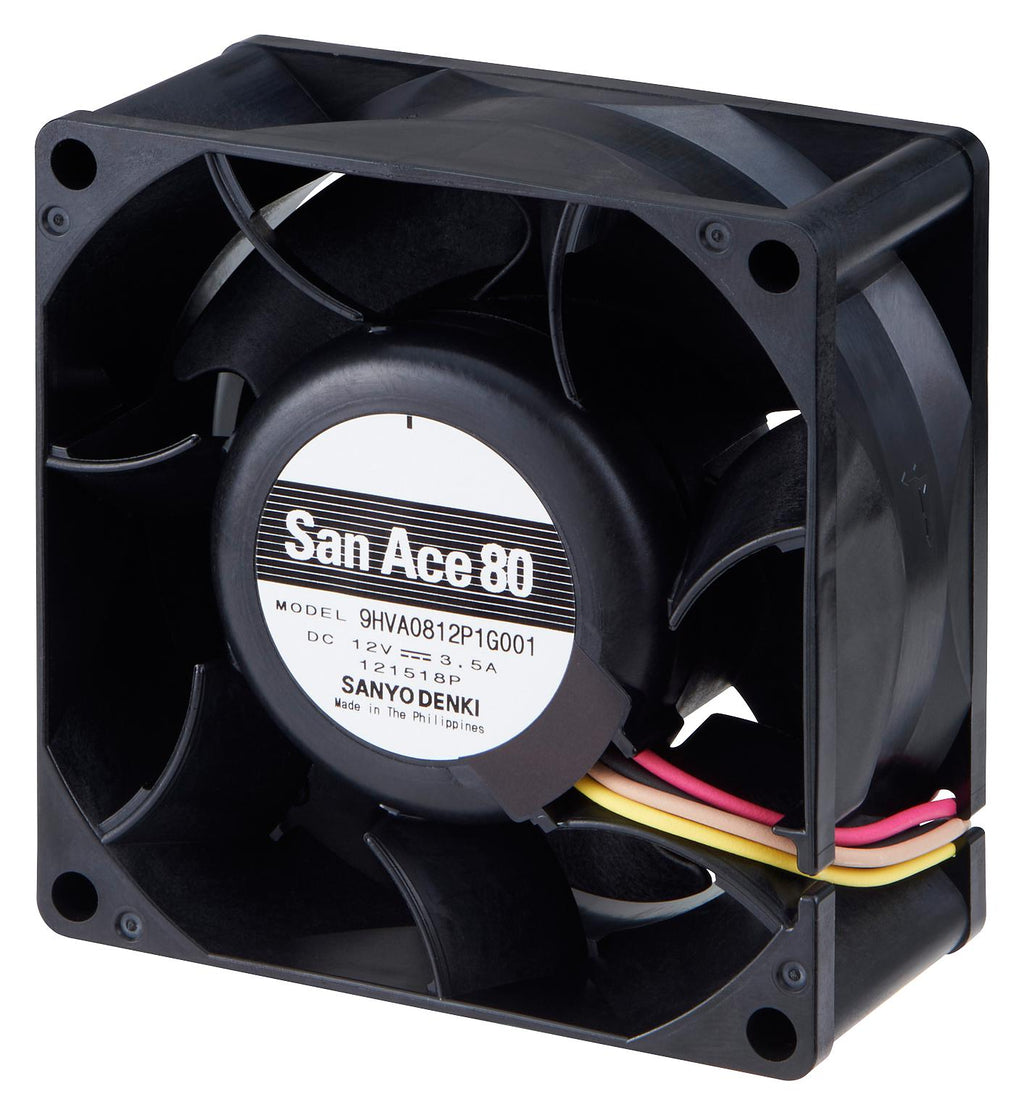 SANYO DENKI - 9HVA0812P1G001 - DC Axial Fan, 12 V, Square, 80 mm, 38 mm, Ball Bearing, 132 CFM