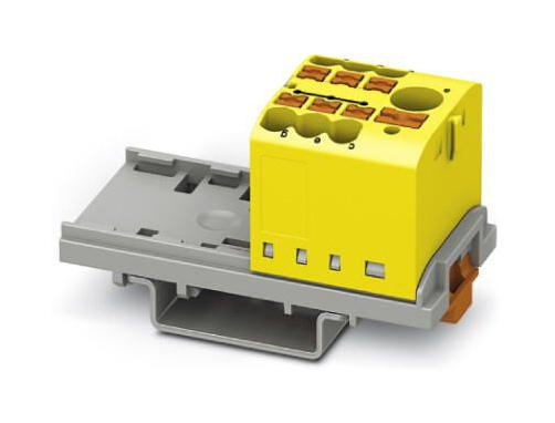 PHOENIX CONTACT - PTFIX 6/6X2,5-NS35 YE - Panel Mount Barrier Terminal Block, Yellow, 24 A, 690 V, 7 Pole, Push In, 12 AWG