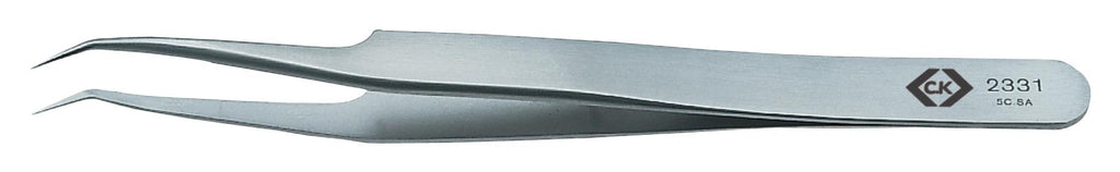 CK TOOLS - T2331 - Tweezer, Fine Bent Tip, Precision, 115 mm, Stainless Steel Body, Stainless Steel Tip