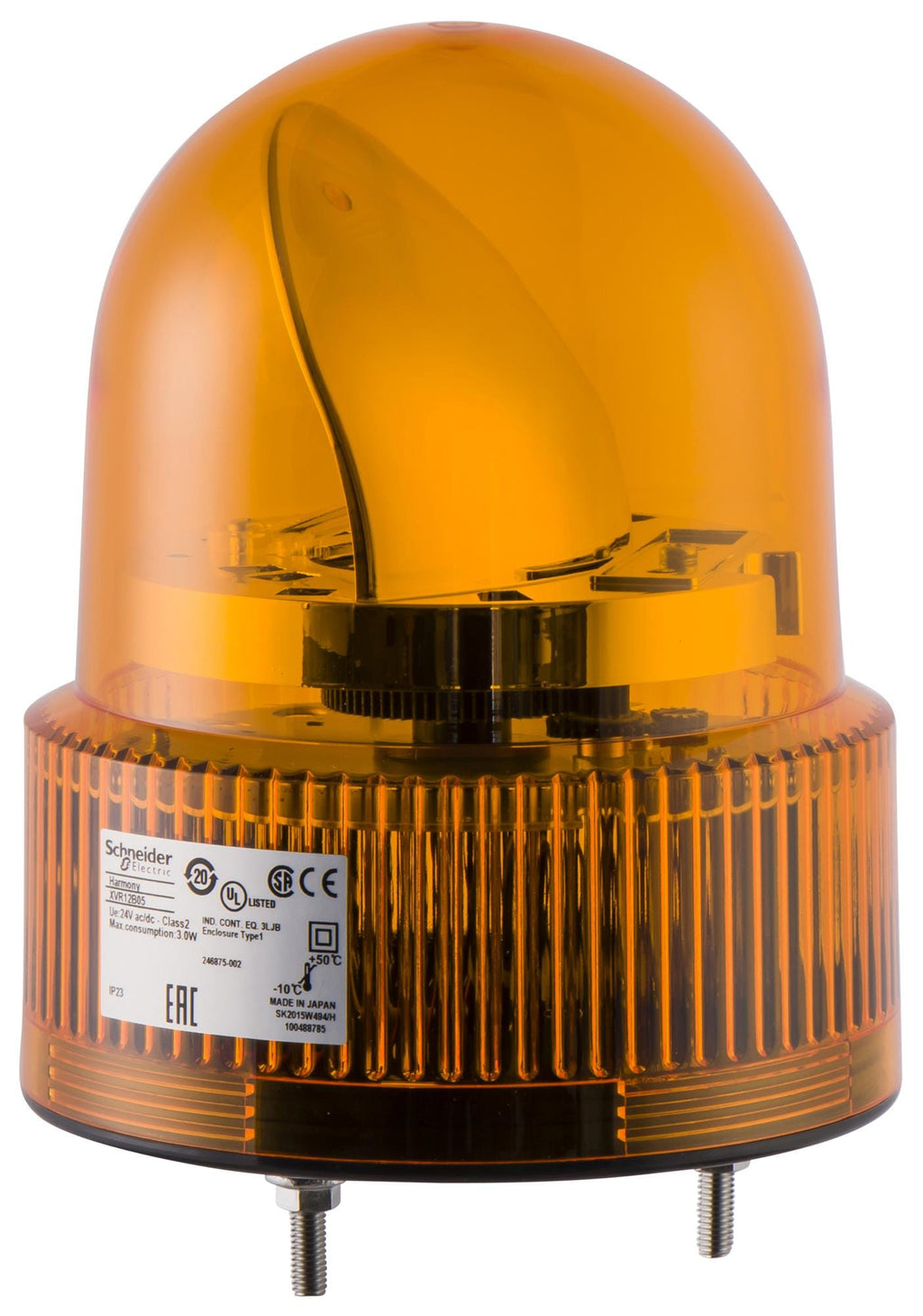 SCHNEIDER ELECTRIC - XVR12B05 - Beacon, Orange, Rotating, 3W, 24VDC 24VAC, IP23, 120mm Dia., 146mm Ext. Depth