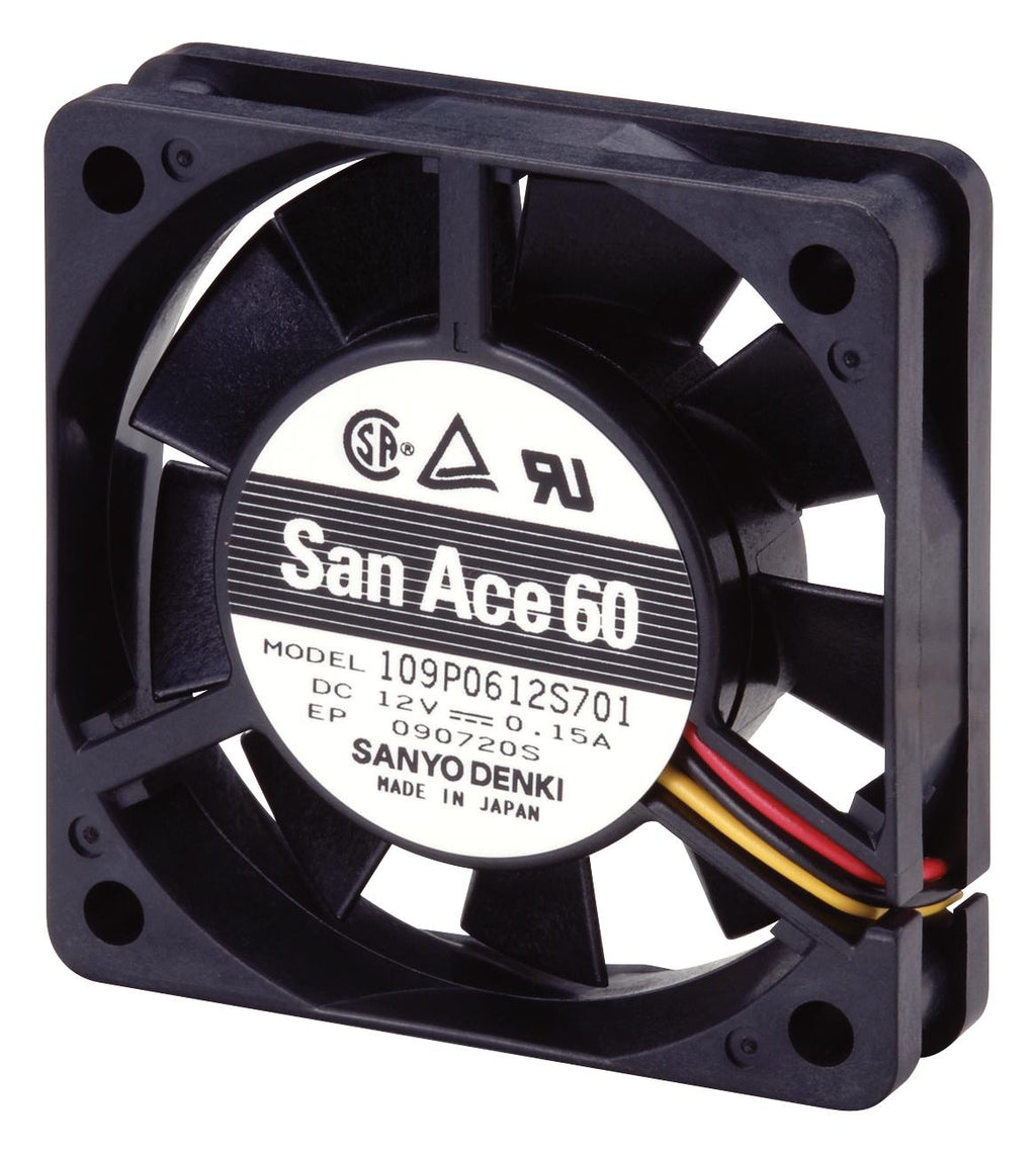 SANYO DENKI - 109P0624H7D01 - DC Axial Fan, 24 V, Square, 60 mm, 15 mm, Ball Bearing, 14.1 CFM