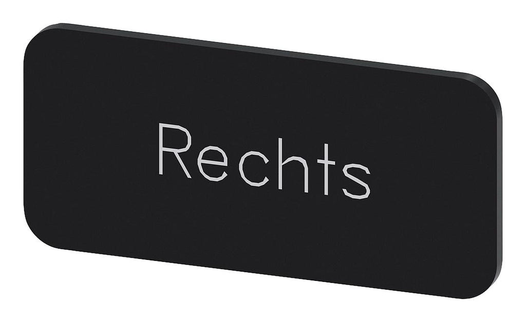 SIEMENS - 3SU1900-0AC16-0AH0 - Labelling Plate, " Rechts ", Black Label, White Font, Snap on/Stick, 27 mm W x 12.5 mm H