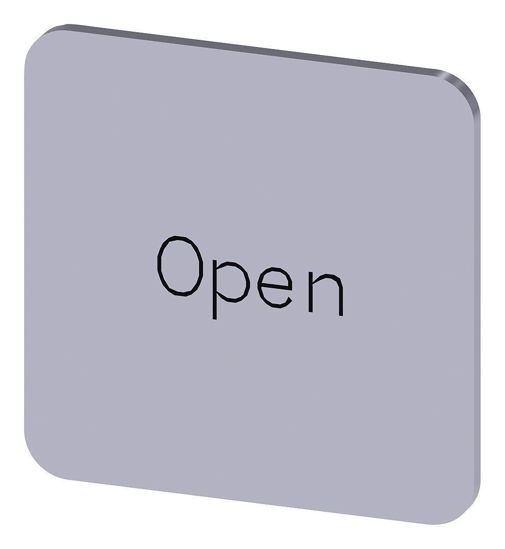 SIEMENS - 3SU1900-0AF81-0DW0 - Labelling Plate, " Open ", Silver Label, Black Font, Stick, 22 mm W x 22 mm H
