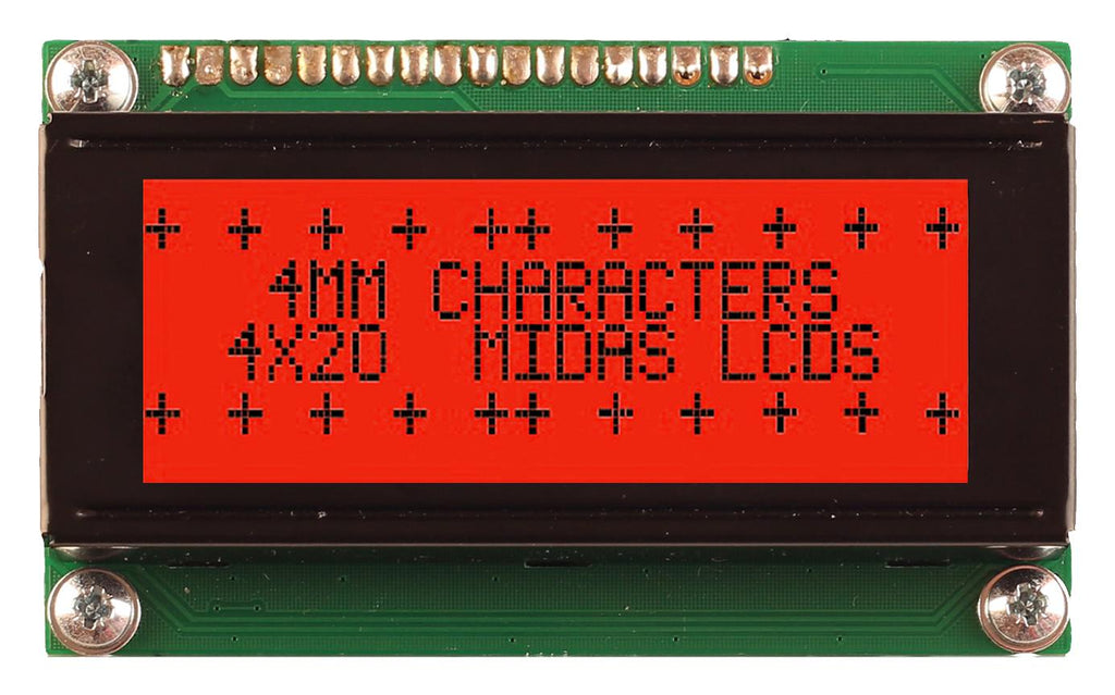 MIDAS - MD42004A6W-FPTLRGB - Alphanumeric LCD, 20 x 4, Black on RGB, 5V, Parallel, English, Japanese, Transflective