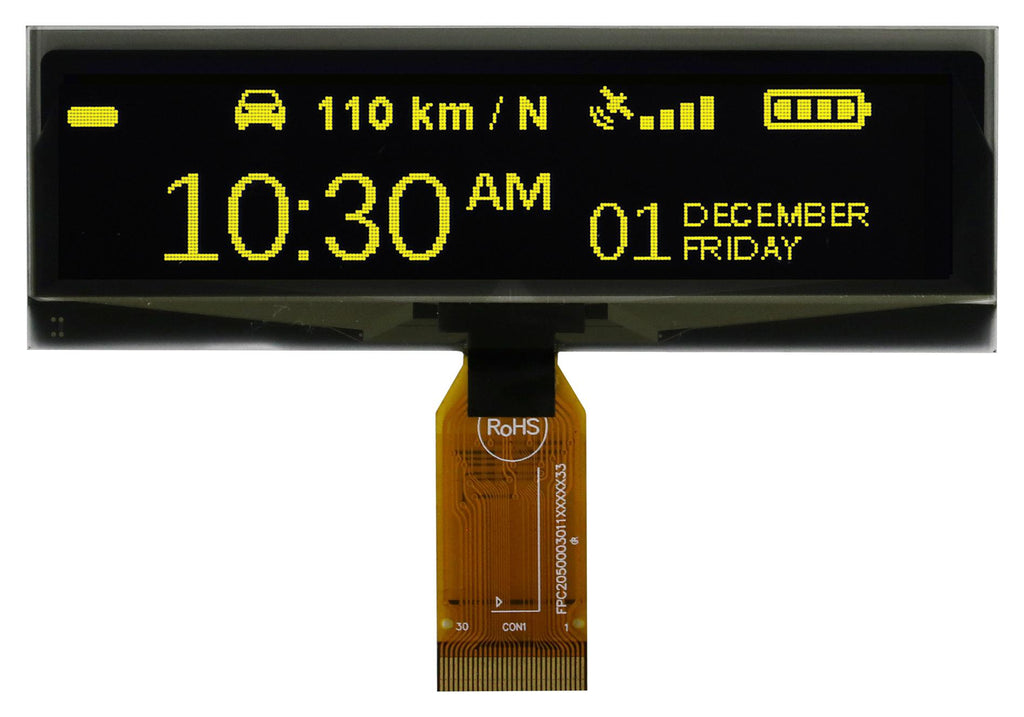 MIDAS - MDOG256064IV-YM - Graphic OLED, 256 x 64 Pixels, Yellow on Black, 3.3V, Parallel, SPI, 99.2mm x 33.5mm, -40 °C