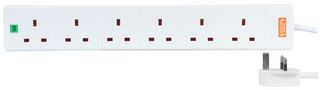 2068S-2M - 6 Gang Surge Protected Extension Lead, White 2m - PRO ELEC