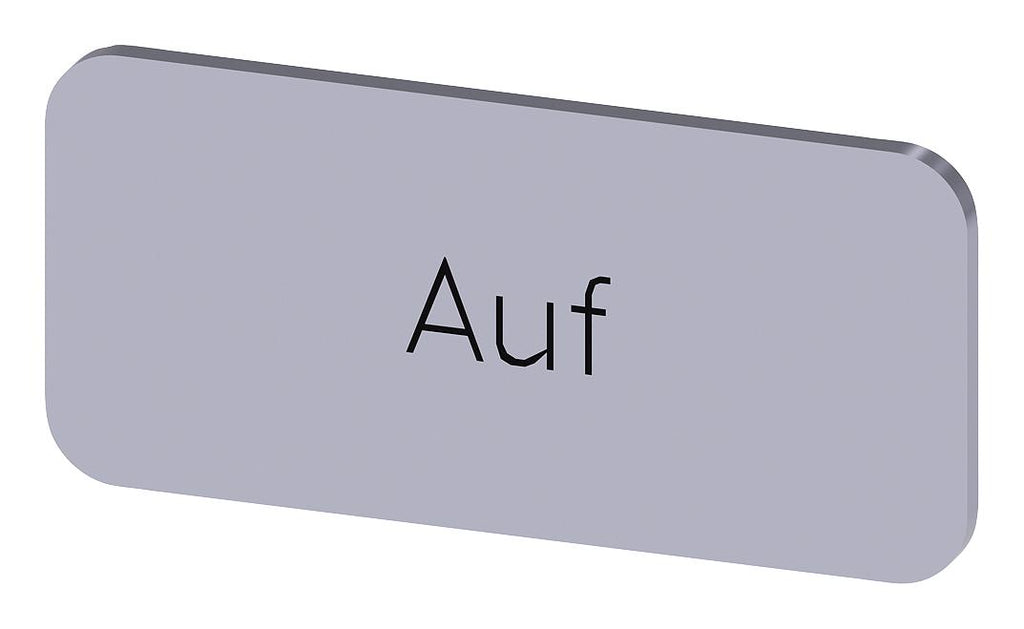 SIEMENS - 3SU1900-0AC81-0AD0 - Labelling Plate, " Auf ", Silver Label, Black Font, Snap on/Stick, 27 mm W x 12.5 mm H