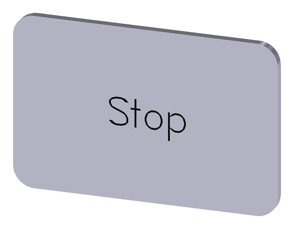 SIEMENS - 3SU1900-0AD81-0DS0 - Labelling Plate, " Stop ", Silver Label, Black Font, Snap on/Stick, 27 mm W x 17.5 mm H