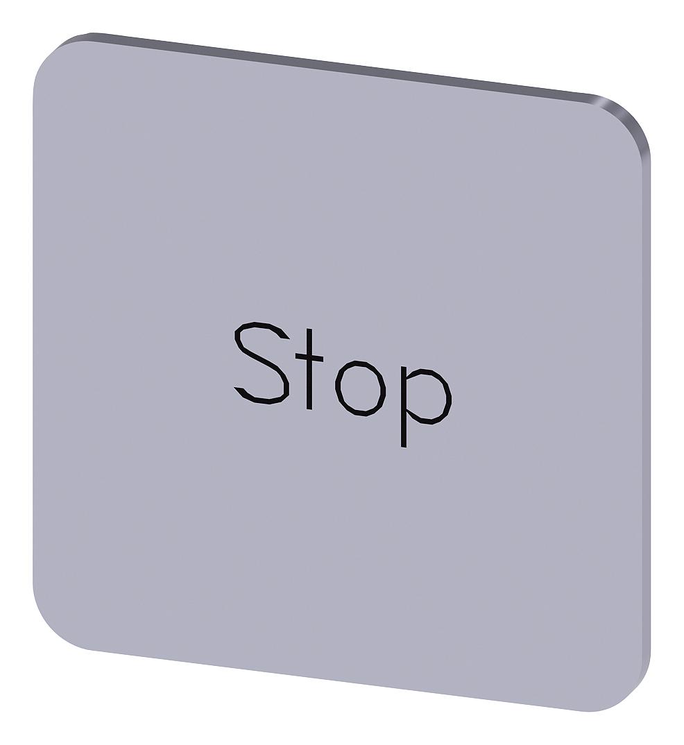 SIEMENS - 3SU1900-0AF81-0DS0 - Labelling Plate, " Stop ", Silver Label, Black Font, Stick, 22 mm W x 22 mm H