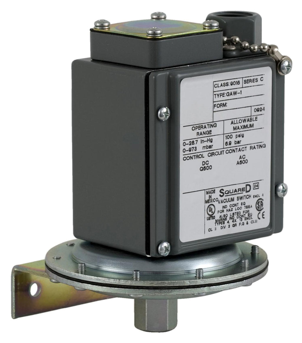 SCHNEIDER ELECTRIC - 9016GAW21 - Pressure Switch, 1/4"-18 NPTF, 0 psi, 100 psi, DPDT, Panel / Chassis, Screw Clamp Terminals