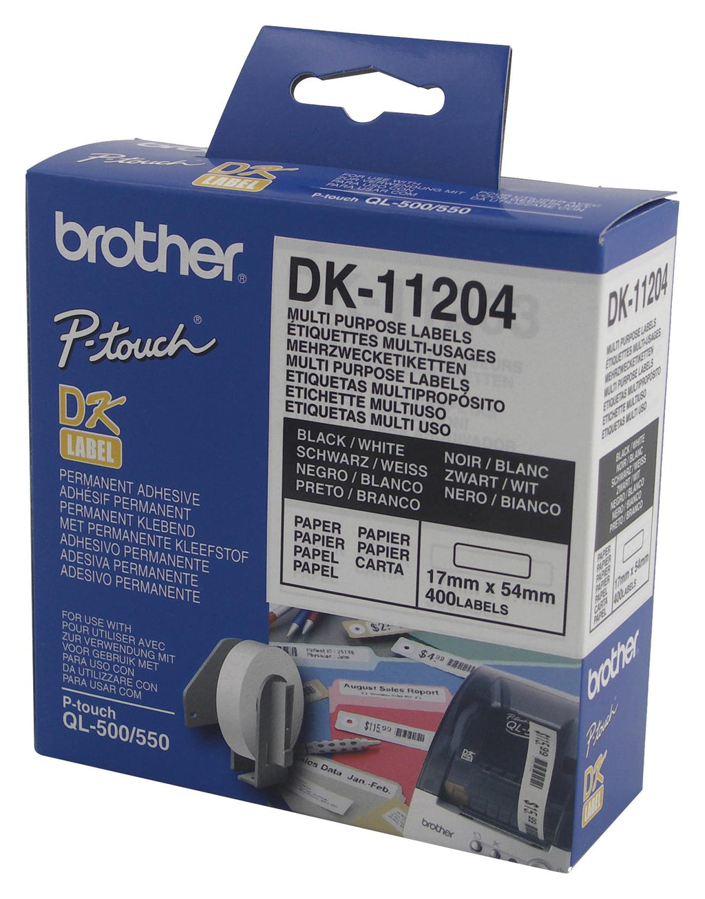 BROTHER - DK11204 - Label, Multipurpose, Identification, 17mm H x 54mm W, Paper, Black on White, 400