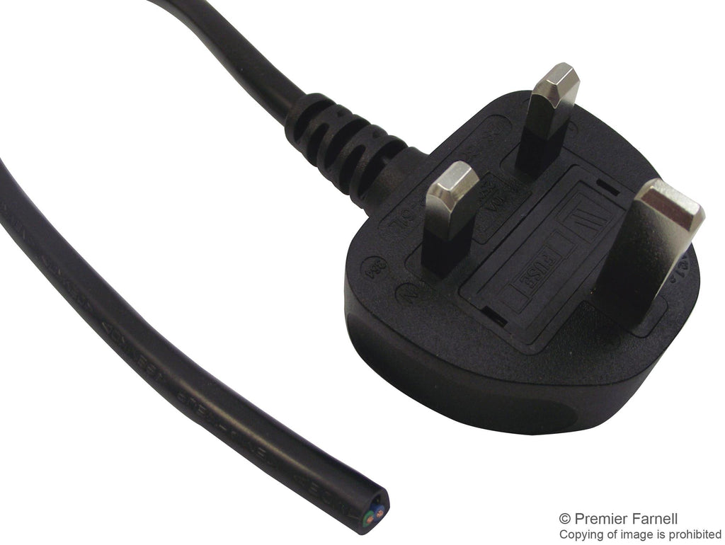 MULTICOMP PRO - GW-151629 - Mains Power Cord, With 10A Fuse, Mains Plug, UK to Free End, 2 m, 10 A, 250 VAC, Black