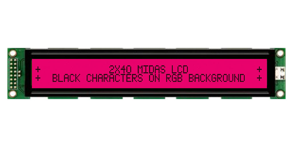 MIDAS - MD24005A6W-FPTLRGB - Alphanumeric LCD, 40 x 2, Black on RGB, 5V, Transflective